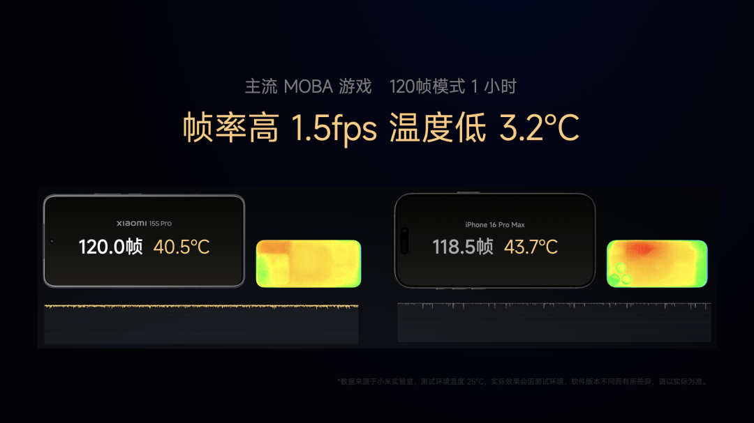 日常使用表现如何呢?常用应用相比 iPhone 16 Pro Max 启动响应速度平均缩短了 30%,非常流畅;应用连续启动两轮,启动时间缩短了 8%;知名 MOBA 手游 120 帧模式 1 小时测试,帧率平直如一条直线,比 iPhone 高了 1.5 帧,温度低 3 度多。