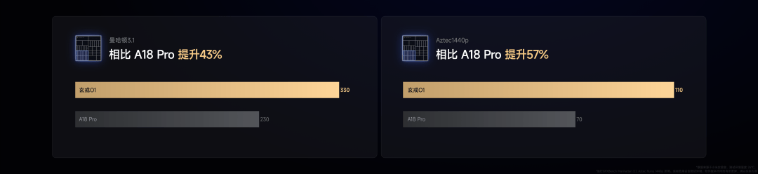 玄戒O1 的规模和工艺都与苹果最先进的 A18 Pro 处理器一样,通过 3nm 最先进的量产工艺制程,将超强性能、190 亿超大规模晶体管汇集在只有 109mm² 的芯片面积上,相当于一个指甲盖的大小。