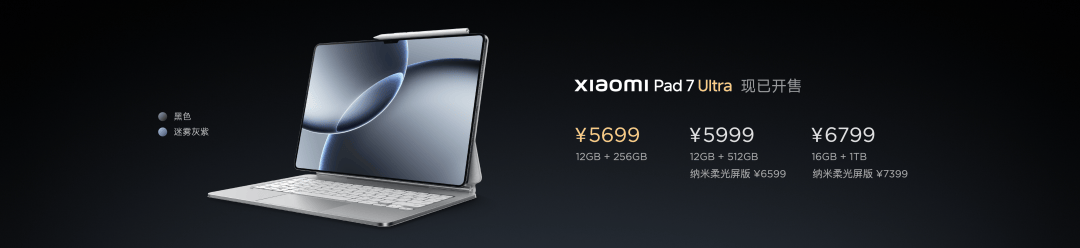 小米平板7 Ultra 提供三种内存配置,分别是:12GB+256GB,建议零售价 5699 元;12GB+512GB,建议零售价 5999 元;16GB+1TB,建议零售价 6799 元。前两个配置还能享受国补,优惠后价格更低。
