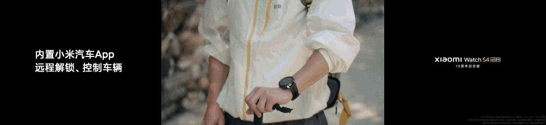 小米手表S4 eSIM 15周年纪念版还支持小米SU7、小米YU7 系列远程控车、开关锁、启动、闪灯鸣笛、控制前后备箱、空调通风等功能;开通eSIM,不带手机也可以轻松操控小米汽车。