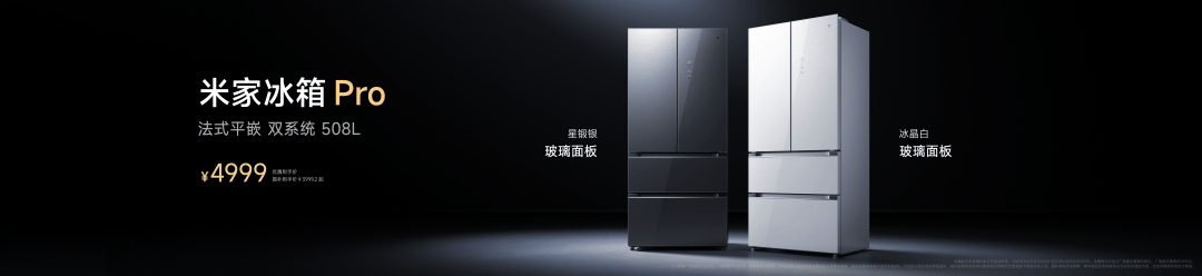今天我们全新推出一款米家冰箱Pro,提供两款玻璃面板配色,材质通透,质感细腻高级,还做到了 60cm 超薄平嵌,占地仅有约半平米,却有 508L 的大容量,能满足一家人的储鲜需求。