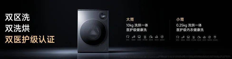 双筒双洗烘配置下,大筒能轻松应对大件衣物,并升级为行业医护级健康洗,有效清除了多种病毒和过敏源。而小筒则专为内衣设计,带有烘干功能,而且保持了行业医护级内衣健康洗的高水平,能够祛除常见细菌、病毒。