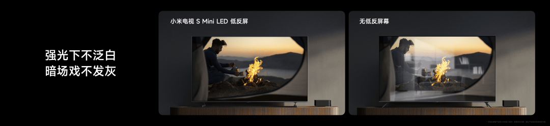 尤其本次配备了低反屏。采用了行业目前先进的低反技术方案之一,整机反射率只有 1.8%。在白天强光下看也不泛白,尤其是暗场戏更深邃,能看清更多细节,任何时候都有好画质。