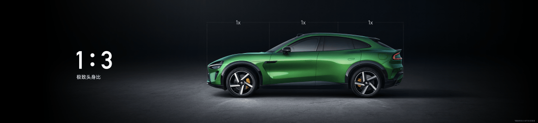 不仅如此,小米YU7 还有 1:3 极致运动的头身比,修长的车头是汽车工业百年历史里沉淀下来的豪华设计。